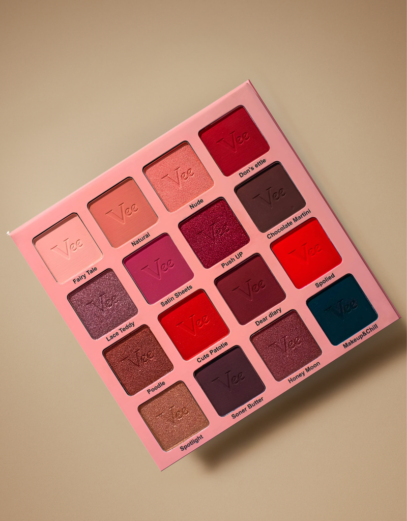 Sublimez votre regard avec la palette de Vee Beauty, une collection élégante pensée pour toutes les carnations. Elle offre des teintes riches et crémeuses – chocolat, rouge, rose doré, sable aux reflets rosés et nuances métalliques – parfaites pour illuminer et sculpter votre visage. Polyvalente, cette palette s’adapte à vos envies, servant aussi d’highlighter, blush, contouring, ou même de rouge à lèvres métallique pour un fini glamour et sophistiqué, au quotidien comme en soirée.